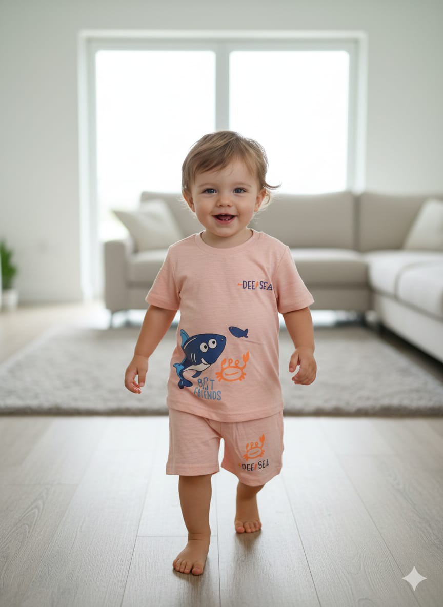 1 Year: T-shirt: Chest-22.5, Long-14.5; Pant: Waist-14,